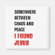 Aimant chrétien élégant et minimaliste avec texte inspirant lecture PARTOUT ENTRE CHAOS ET PAIX J'AI TROUVÉ JÉSUS en caractères gras noir et rouge typographie, Cadeaux correspondants disponibles.