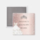 Pour un élégant Quinceañera, 15ème anniversaire. Couleur arrière - plan rose or dégradé. Décoré avec de la poussière de parties scintillant en faux argent, une couronne de tiare et une robe. Personnalisez et ajoutez un nom, un âge et une date. Quinceañera est écrit avec un script de style moderne écrit à la main avec des swashes. Peut être utilisé à la fois comme faveurs de fête ou comme rappel Enregistrer la date pour vos invités.