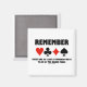 Êtes-vous descendu horriblement à la table du pont, de l'ordre de -400, -500, -800, etc ? Laissez votre côté joueur de pont cirer avec cet aimant avec les costumes de quatre cartes avec le rappel suivant disant à tout joueur de pont qui se lance dans un comportement d'enchère risqué ou de mauvais jeu : "Rappelez-vous qu'il y a au moins mille façons de mourir à la table de pont". Pas besoin d'être un joueur de pont ou un professeur de pont passionné pour profiter de ce son rappel que le pont est un jeu d'humble en effet!