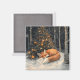 L'art de l'aimant représente un adorable renard endormi devant un sapin de Noël dans les bois.