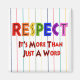 Les lettres arc-en-ciel épellent le mot "Respect" avec des lettres rouges et noires en dessous qui disent "C'est plus qu'un mot." Portez cette puissante déclaration de femme ou donnez-la comme un cadeau. Et puisque le respect ne se limite pas au sexe ou à l'âge, n'importe qui peut contribuer à répandre cette clé importante de la paix sur terre.