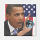 Le président Obama a peint à l'huile avec le drapeau américain dans le dos et la terre dans la main. par Elenne Boothe