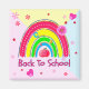 Arc-en-ciel coloré avec lettres, pomme rouge, fleur et texte "Retour à l'école" sur un pastel couleurs arrière - plan-cadeau parfait pour une fille
