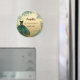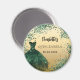 Pour une élégante Quinceañera, 15e anniversaire. Un fond doré factice. Décoré d'une robe émeraude et de confettis verts. Personnalisez et ajoutez un nom et une date.