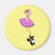 Cute Girl Robe Rose Black poodé dessin original art rétro aimant rond