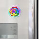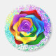 Grand rose fleuri avec pétales arc-en-ciel sur arrière - plan blanc, peint sur des éclaboussures de peinture colorée et lumineuse. 3d