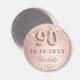 Magnifique, classique, glamour et girly, aimant de save the date pour une fête de 90e anniversaire. Fond dégradé rose gold et blush. Décoré de rose gold, de faux strass et de paillettes. Personnalisez et ajoutez un nom. Le nom est écrit avec une police manuscrite de couleur rose foncé moderne. Le numéro 90 est écrit avec une police de caractères de style ballon.