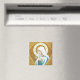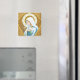 Ce design s'inspire d'une belle cale peinte et brodée sur un vêtement catholique porté par des masses de la Sainte Mère. Elle tient une tige de lys dans ses mains, un bouquet de roses la encadre, un halo couronne sa tête.