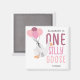 Un doux petit saké pour le grand jour de votre stupide oie ! Cet aimant carré personnalisé comprend une oie volante tenant des ballons bleus avec l'expression "ONE Silly Goose" fixée contre un arrière - plan de ciel mou. Parfait pour une fête, une décoration de réfrigérateur ou un souvenir personnalisé pour un premier anniversaire. Facile à customiser avec le nom de votre enfant et la date de l’événement pour une touche de charme.