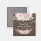 Ces magnets sont conçus avec des couronnes roses à fleurs, accédant à un arrière - plan de bois rustique, surmonté de lampes à cordes. Personnalisez avec votre propre texte pour créer un cadeau unique !
