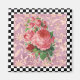 Une jolie illustration botanique de roses roses roses vintages sur arrière - plan floral rose avec bordure motif en damier noir et blanc crée un joli design de thème de jardin.