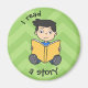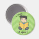 Petit garçon lisant un livre. L'arrière - plan est vert. Vous pouvez utiliser cet aimant pour créer la routine quotidienne de votre enfant.