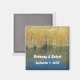 Offrez à vos invités un souvenir unique de votre jour de mariage avec ces magnets personnalisés. Ce bel aimant naturel présente une photo d'herbe de lac brun et vert le long de la rive du lac réfléchie dans l'eau bleue. Les noms de la mariée et du marié et la date du mariage apparaissent dans l'eau en blanc. Personnalisez facilement ces gardes mariages rustiques sur l'écran de commande.