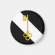 "Sable, un bend argent et sur toute une clé ou."