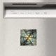 Magnet avec "Shaken", par Susan Wallace. Copyright © 2010, Susan Wallace. Un ensemble de formes ovales vertes explose vers l'extérieur d'un éclat orange et jaune dans ce design abstrait dramatique, mais ludique.