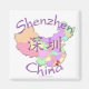 Shenzen de la province du Guangdong sur une carte colorée de la Chine inclut les symboles chinois pour 'Shenzhen' et sa position est marquée sur la carte avec un coeur et un drapeau. Un cadeau d'adoption unique et magnifique pour la Chine ! Customisez-le avec un nom ou une photo ! Conçu par Hendrika de RedThreadMaps.com
