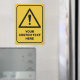 Signal d'avertissement jaune en forme de triangle avec point d'exclamation. Couleur arrière - plan personnalisée. Texte personnalisé.