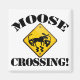 Un drôle de panneau de croisement d'orignaux avertit les conducteurs des dangers de frapper un orignal sur la route.