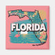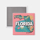 L'aimant frigo de style rétro présente une vignette de Floride avec flamingo et silhouette d'état sur arrière - plan rose.