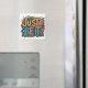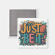 Le design magnétique présente le texte "Just Be it" dans une police ludique, avec des tourbillons colorés et des fioritures décorant les lettres.