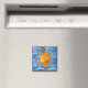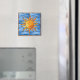 De beaux numériquement créèrent du soleil en vitrail dans des oranges chaudes et de l'or contre un ciel bleu. Ajoutez une touche de beauté à votre réfrigérateur.