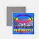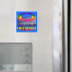 Miami : une pièce sur le mot "Miami" sur ce design de Stronsy montrant le texte "Son Ami Son Ami" sur une image de Miami en surplomb de la nuit, depuis l'eau assise sur un grand texte en gras criant presque "Miami" sur cet aimant de qualité pour coller sur votre réfrigérateur ou d'autres surfaces métalliques appropriées.