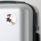 Une sorcière aux cheveux roses chibi volant sur son balai avec son chaton !