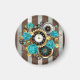Aimant Steampunk Clock and Turquoise Roses on Striped