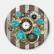 Aimant Steampunk Clock and Turquoise Roses on Striped