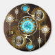 Turquoise lenses with antique watch with brass gears and golden keys on rusty, brown background. Steampunk style.