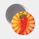 Un mignon poivre de dessin animé posant pour une photo. Magnets personnalisés. Style Superstar. Style vintage appliqué à l'impression.