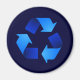 Aimant bleu foncé avec symbole de recyclage bleu vif.