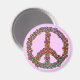 Un panneau de paix rétro / symbole de paix magnétique frigo avec des couleurs de teinture cravate et des fleurs de couleurs vives sur elle. Un design coloré et girly pour les hippies fiers / amateurs de paix mondiale. La couleur rose arrière - plan est personnalisable.