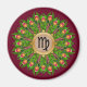 Une couronne colorée de plumes de paon est personnalisée avec le signe Zodiaque Virgo — La Vierge. Ce symbole zodiaque s'adresse à tous ceux qui sont nés entre le 23 août et le 22 septembre.* Ces couleurs brillantes en plumes de paon conviennent aux arrière - plans sombres et légers (bordeaux ici). *Source : www.astrology-zodiac-signs.com