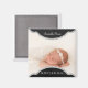 Concevez vos propres magnets de photos de bébé mignons comme des gardiens pour la famille et les amis pour présenter votre bébé fille ou nouveau-né fils bébé. Plein saignement photo de nouveau bébé avec nom en haut en lettres de script élégantes en noir. Encadré dans une bordure incurvée en faux tableau avec une bordure en argent glittery. Bottom a un tableau noir en argent identique affichant la date de naissance et le poids du bébé personnalisé. Un baby shower unique qui deviendra un aimant frigo personnalisé ou un décor de bureau pour les membres de la famille fiers. Des cadeaux photo amusants pour grand-mère et grand-père, aussi.