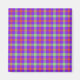 Aimant motif tartan amusant dans les tons violets, orange, et un peu de vert.