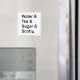 Un aimant avec les ingrédients de kombucha : eau, thé, sucre, scoby. Design original.