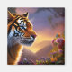 Magnifique Blue Eyed Tiger Paysage montagneux et fleurs roses AI produit art AI Art créé par minx267