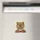 Cette conception comprend un tigre portant une veste intelligente et une cravate à arc rouge.