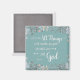 Aimant avec typographie blanche en détresse sur arrière - plan aqua texturé entouré de fleurs d'aquarelle, avec vers bien connu de Romains 8:28, "... Toutes les choses travaillent ensemble pour le bien de ceux qui aiment Dieu..."