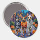 Les adorables chiens de bétail australiens habillés de costumes d'Halloween ludiques portent des seaux citrouilles tout en trompant ou en traitant sous le ciel illuminé par la lune. Ce design festif met en valeur le manteau moucheté de la race, les yeux intelligents et l’esprit énergique, capturant parfaitement l’atmosphère éffrayante et amusante de la nuit d’Halloween. Une célébration animée pour les amoureux de les chiens et les fans d'Halloween.