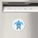 Illustration vectorielle d'une tortue de mer au design d'île tropicale avec des palmiers dans les tons bleus. Tags : Bleu, blues, ciel bleu, palmier, arbre, soleil, coucher de soleil, tortue, mer, tropical, reptile, lever du soleil, vacances, île, île, paradis, utopie, bliss, caraïbes, floride, hawaii, 2020, plage, lune