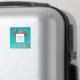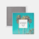 Aimant d'événement avec une belle photo. De grands palmiers avec de longues troncs maigres devant un beau ciel vert. Jeu de couleurs rétro. Détente et détente.
