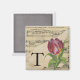 La tulipe violette et jaune de style botanique s'associe à la musique vintage en feuille dans un style victorien classique. Cette conception inspirée de la découpage est personnalisée avec le monogramme "T" sur un arrière - plan de parchemin âgé.