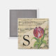 La tulipe violette et jaune de style botanique s'associe à la musique vintage en feuille dans un style victorien classique. Cette conception inspirée de la découpage est personnalisée avec le monogramme "S" sur un arrière - plan de parchemin âgé.