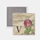 La tulipe violette et jaune de style botanique s'associe à la musique vintage en feuille dans un style victorien classique. Cette conception inspirée de la découpage est personnalisée avec le monogramme "V" sur un arrière - plan de parchemin âgé.