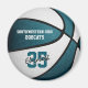 Cet aimant cool à thème de basket présente l'image d'un basketball réaliste avec alternance de panneaux recolorés turquoises et blancs - facilement customiser avec le nom de l'école, le nom de la mascotte et le nom du joueur et le numéro du maillot - par katz_d_zynes