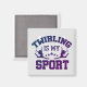 Twirling est mon sport écrit dans un style sportif avec deux baguettes et, certaines étoiles ont un effet bleu à violet foncé. Deux matraques blanches forment un X à l'arrière sur un arrière - plan gris clair