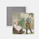 Carte Vintage de Noël illustration d'enfants victoriens avec un petit arbre de Noël sur un traîneau.