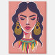 modèle artistique de fille. , Dessinez dans le style de couleur. , Lèvres, hutte, ornements d'oreilles et collier d'or